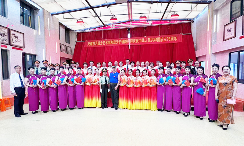 在即将迎来新中国75周年华诞之际,无锡市老战士艺术团的志愿者们,心怀感恩来到无锡蓝天护理院,同长者们欢聚一堂,共度佳节,给长者们带来最真挚祝福的同时也带来了精彩的节目。演出拉开序幕,志愿者们用动听的歌声,祝贺伟大祖国75周岁的生日,用优美的舞蹈,抒发大家的爱国情怀。 护理院的长者们沉浸在节日的喜悦之中,红歌团的长者们带来了好听的《东方红》、《没有共产党就没有新中国》甜美的歌声在护理院中回荡;一边品尝着工作人员精心准备的美食,一边跟着节奏合唱《我的祖国》、《我爱你中国》等动听的歌曲,各个脸上洋溢着幸福的笑容。志愿者们用歌声传递着爱,让长者们感受到了节日的氛围,和他们一起庆祝祖国母亲的生日。 尊老敬老是我们中华民族的传统美德,尊老敬老是先辈们传承下来的宝贵精神财富,让我们怀着一颗感恩的心,关心老人,关爱老人,孝敬老人,共建和谐社会。在这个特殊的日子里,让我们共同祝愿伟大的祖国繁荣昌盛,国泰民安,更加富强!