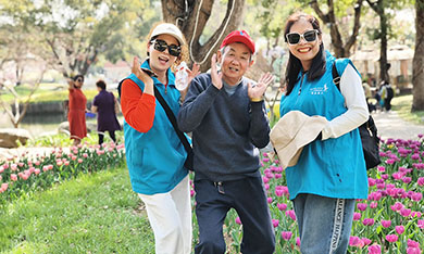 车子到达梅园风景区大门,开原义工们早早等候长者们的到来,在开原义工的搀扶下,长者们依次下车,他们小心翼翼地推着行动不便的长者进入公园,清新的空气扑面而来,嫩绿的草地、五彩斑斓的花朵、波光粼粼的湖水,一切都让长者们陶醉其中。朱奶奶看着湖边盛开的郁金香,不禁感慨:“好久没有看到这么美的景色了,感谢养老院组织我们春游。”