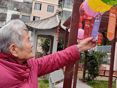 正月十五月儿圆,家家户户庆团圆。3月3日中午,蓝天养老院内欢声笑语,其乐融融。一场别开生面的“欢欢喜喜闹元宵”猜灯谜活动在这里热闹举行,长者和员工们欢聚一堂,共度元宵佳节。 一走进蓝天养老院的花园,是一片喜庆的红色海洋,回廊里五彩缤纷的灯笼高高挂起,下面垂着一条条写满谜语的彩色纸条。长者们有的坐着轮椅,有的拄着拐杖,在工作人员的陪伴下,兴致勃勃地参与到猜灯谜的活动中来。 “这个我知道!‘关’猜一个成语是‘美中不足’字!”刘奶奶兴奋地拍着手,像个孩子一样开心。工作人员赶紧把谜底记下,为刘奶奶送上了一份小礼品。 这次准备的灯谜可真不少,有猜字的、猜成语的、猜地名的,还有脑筋急转弯。员工们特意挑选了一些通俗易懂、贴近生活的谜语,既能让长者们动动脑筋,又不会太难理解。 “这个谜语好,‘红公鸡,起得早,起来不会喔喔叫,屋里走一遭,尘土都跑掉!这是鸡毛掸子对不对”王爷爷拿着“奖品小马”,笑得合不拢嘴。 员工们纷纷也摘下灯谜相互交头接耳的猜着谜语,想到答案的立即拿着谜面到奖品兑换处兑换奖品。拿到奖品的还意犹未尽的继续看着谜面,三三两两还在讨论着刚才的谜语,依依不舍不愿离开,欢声笑语响成一片。 猜对谜语的长者和员工们都能获得一份小礼品,有毛巾、沐浴露、洗发水等日用品,虽然礼物不贵重,但每个人捧着奖品,脸上洋溢着满足的笑容。 猜灯谜活动结束,食堂里又飘来阵阵香气,今天的“重头戏”是热腾腾的汤圆。“元宵节快乐!”“祝您身体健康!”员工们端着汤圆送到每位长者面前。咬一口软糯的汤圆,甜在嘴里,暖在心里。 这个元宵节,养老院里不仅有猜灯谜的欢乐,更有浓浓的亲情。长者们感受到了节日的温暖,员工们也在付出中收获了感动。最好的礼物不是丰盛的宴席,不是贵重的礼品,而是陪伴和关爱,愿这份温情永远延续,愿所有长者健康长寿,幸福安康,元宵节快乐!