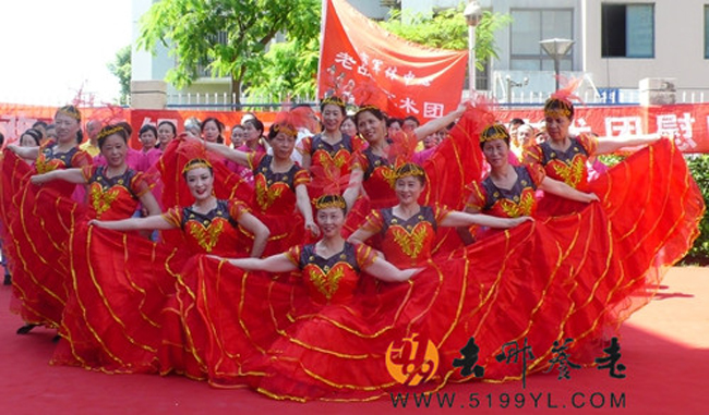 今年8月1日是中国人民解放军建军88周年纪念日, “八一”建军节来临之际,市军休中心老战士艺术团排练了“抗日烽火”“大刀舞”“共筑中国梦”等14个歌舞节目,在7月28日走进由4位老军人自筹数千万资金建立的无锡蓝天护理院,向入住该院的30多位老军人和老人献上了一台精彩的演出。市军休中心老战士艺术团团长等与蓝天护理院退伍军人联合表演了军歌联唱。