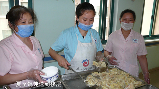面对300多位老人众口难调的尴尬和保障馄饨的新鲜,无锡蓝天护理院食堂当天全员总动员,早晨提早上班,包馄饨采用一个拿皮放馅一个包两两搭档,下包馄饨采用3个大锅一齐开锅轮流下……,他们用耐心、细心、贴心的三心服务,向全院老人交了一份满意答卷。