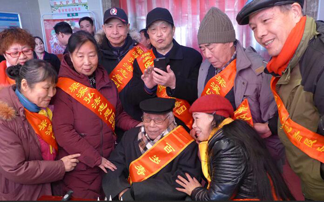 2月6日当天上午,无锡市婚姻行业协会、东航江苏无锡分公司客舱服务部、梁溪区弘法志愿者服务团、无锡湖滨饭店党总支、滨湖区蠡湖街道民政办、滨湖区蕾蕾艺术团、民革滨湖三支部、滨湖区申新社区等志愿团队志愿者,在位于无锡市滨湖区天竺花园58号的无锡蓝天护理院,向入住该院的顾蓉镜、陆月新、满根娣、顾荣初、徐燕文等百岁寿星祝寿,携手共迎新时代的第一个春天。志愿者以说唱相声、舞蹈、乐器合奏等种种方式表达对百岁老人的美好祝福,无锡湖滨饭店党总支党员干部献上了该酒店点心大师当天早晨特地为6位百岁老人制作的百岁蛋糕,东航江苏无锡分公司客舱服务部的空姐向百岁寿星顾荣初老先生送上了书写的“福”字。