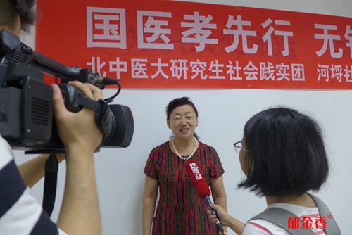 北京中医药大学“国医孝先行,无锡传真情”活动7月23日上午在滨湖区河埒社区进行首站社区服务,受到无锡电视台都市资讯频道和无锡教育电视台新闻记者的关注,两台“今晚60分”“21视点”栏目记者进行现场采访,北京中医药大学第三附属医院的师生成了当日名星。