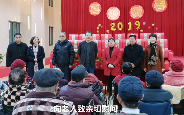 “欢迎区委、区政府领导来送温暖。”全体老人用掌声迎接无锡市滨湖区委、区政府赵虹路、张爱军 、李雪花等相关领导。赵虹路代表滨湖区委、区政府向该院万常旗院长送上了3万元慰问金。(如图1)滨湖区委、区政府相关部门和蠡湖街道领导,同到蓝天护理院向老人祝贺即将到来的2019春节。