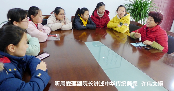 我们是承担社会责任,替天下儿女尽孝。”在无锡蓝天护理院接待室,无锡大桥实验学校初一(10)班学生刘璞、帅元、金陶迦、陈鸣辰、陈彦羽、曾子怡、柴雅馨等7位女生听取了该院副院长周爱莲、护理部主任兼百岁护理组负责人高雪,对如何用孝心尽心护理入住老人的方式、方法和发生的实例。透过蓝天养老护理院里老爷爷老奶奶们过着“衣来伸手,食来张口”的生活表面,7位初中学生的“调研”得出了如果爸爸妈妈送爷爷奶奶或外婆外公到象“蓝天”这样养老护理院是“孝”与“不孝”的结论,给寒假社会实践画上了一个圆满的句号。(许伟文摄/文)