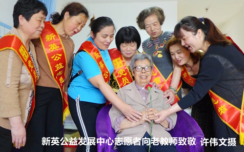 “老奶奶们需要我们社会的爱心陪伴。”新英公益发展中心志愿者、无锡富士电机有限公司职工杨颖洁女士俯身与94岁孙洁梅老人拥抱,用手轻轻给她理额前的头发,又用双手捧着她的脸,夸孙洁梅老奶奶真漂亮。曾经的白衣天使孙洁梅老人,被杨颖洁这一串孙女般亲情举动感动得流下了泪水,杨颖洁又用餐巾纸轻轻在孙洁梅老奶奶眼角擦拭。杨颖洁女士这位外资企业管理层干部的一举一动,感染着现场新英公益发展中心的每个志愿者。