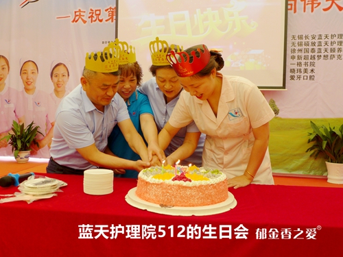 “今天好开心,吃了蛋糕还拿了红包。”护士节中午,无锡蓝天护理院院部在蓝天大厅为当月生日的周爱莲、罗丽、马小娟、马仪明等部分护士、护理员、食堂后勤人员举办了双节生日派对。