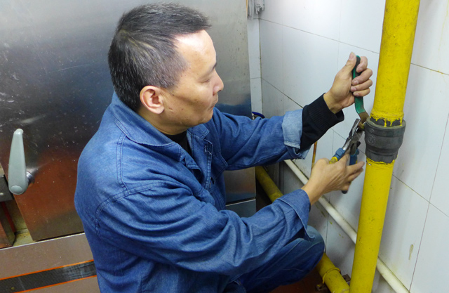 近期我市接连发生安全事故,给人民群众生命财产造成严重损失,根据江苏省委、无锡市委指示,无锡蓝天护理院于15日开展安全生产自查。护理院温龙雨副院长带领相关技术人员,对变电箱、电路、燃气筏门、管道进行了重点检查。温龙雨副院长还到食堂让炊事员对灶具进行点火操作,检验有无隐患。