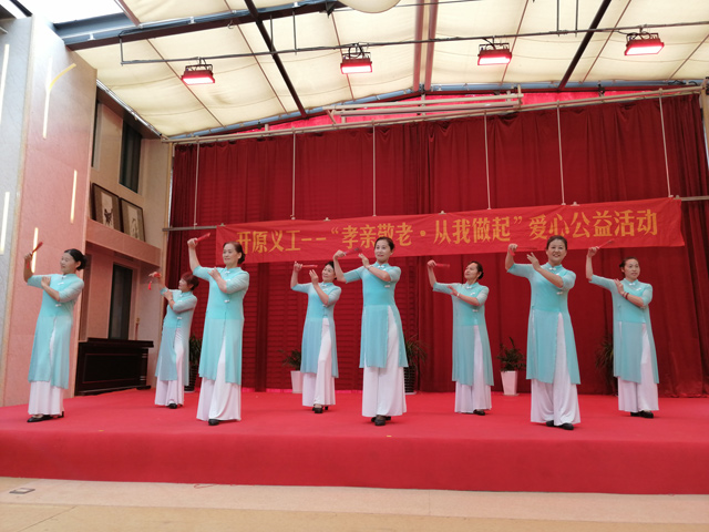 开原义工为老人理发,并为老人献上萨克斯合奏《欢聚一堂》、舞蹈《南泥湾》、旗袍秀《小小新娘花》等丰富多彩的节目,陪伴蓝天养老院老人度过一个温馨愉快的生日会。