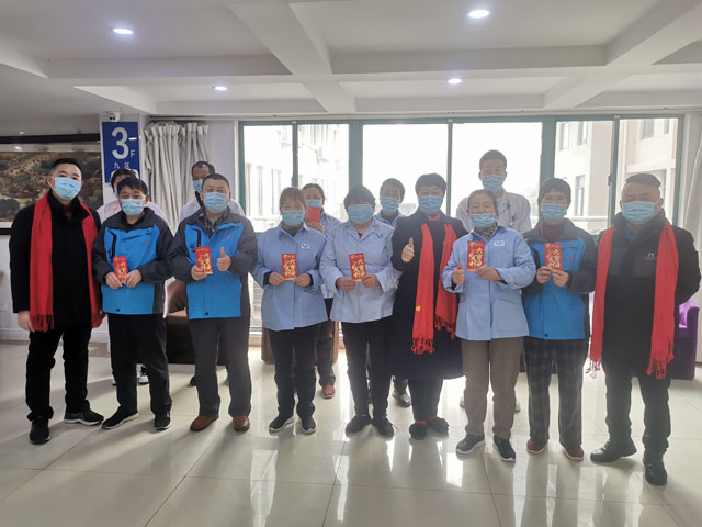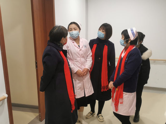 “新年好,新年快乐,你们辛苦了……”院领导们来到各部门各楼层进行拜年活动,并一一送上新年红包。“谢谢领导,新年快乐,恭喜发财……”护理员阿姨们收下红包,脸上露出灿烂的笑容。