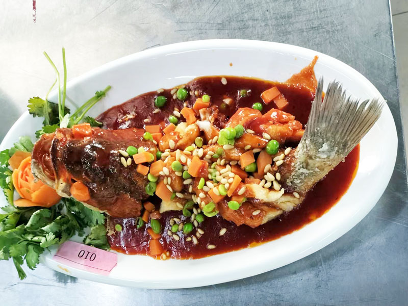 吴春军大厨参加的比赛项目是“适老热菜”,他准备的两道热菜分别是“松鼠桂鱼”和“荷塘小炒。”吴大厨的“荷塘小炒”讲究快火爆炒,鲜脆好吃又诗意,像青绿山水画。这道菜不但颜值高而且营养全面,是适合老年朋友的爽口蔬菜。另一道“松鼠桂鱼”可是吴大厨的拿手好菜,改刀、定型、摆盘、浇汁一气呵成,既考验刀工又考验火候,是一道十足的“功夫菜”,吴大厨的“松鼠桂鱼”颜色明亮、酸甜可口、形如松鼠、口感酥脆,在制作时还特别将白砂糖替换为更加健康的木糖醇,既考虑了老年朋友的口味又考虑了他们的健康,十分不易。牛院中大厨参加的比赛项目是“适老营养套餐”,一份套餐内包含了大荤、小荤、蔬菜、汤、点心和主食。切剁浆拌,牛大厨使出了“十八般武艺”;煎炸烹炒,牛大厨一步步井井有条。每一道菜都是牛大厨精心搭配、细心烹调,为的就是让老人们吃上即可口又营养的饭菜。最终,牛大厨的努力也打动了评委,荣获大赛进取奖。台上一分钟,台下十年功。其实,两位大厨从收到参赛通知,就开始积极备赛,反复试菜,寻找不足,才换来了今天的收获。两位大厨只是蓝天养老院两名普普通通的员工,蓝天养老院还有许许多多在岗位上默默奉献自己的员工。