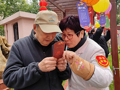 正月十五月儿圆,家家户户庆团圆。3月3日中午,蓝天养老院内欢声笑语,其乐融融。一场别开生面的“欢欢喜喜闹元宵”猜灯谜活动在这里热闹举行,长者和员工们欢聚一堂,共度元宵佳节。 一走进蓝天养老院的花园,是一片喜庆的红色海洋,回廊里五彩缤纷的灯笼高高挂起,下面垂着一条条写满谜语的彩色纸条。长者们有的坐着轮椅,有的拄着拐杖,在工作人员的陪伴下,兴致勃勃地参与到猜灯谜的活动中来。 “这个我知道!‘关’猜一个成语是‘美中不足’字!”刘奶奶兴奋地拍着手,像个孩子一样开心。工作人员赶紧把谜底记下,为刘奶奶送上了一份小礼品。 这次准备的灯谜可真不少,有猜字的、猜成语的、猜地名的,还有脑筋急转弯。员工们特意挑选了一些通俗易懂、贴近生活的谜语,既能让长者们动动脑筋,又不会太难理解。 “这个谜语好,‘红公鸡,起得早,起来不会喔喔叫,屋里走一遭,尘土都跑掉!这是鸡毛掸子对不对”王爷爷拿着“奖品小马”,笑得合不拢嘴。 员工们纷纷也摘下灯谜相互交头接耳的猜着谜语,想到答案的立即拿着谜面到奖品兑换处兑换奖品。拿到奖品的还意犹未尽的继续看着谜面,三三两两还在讨论着刚才的谜语,依依不舍不愿离开,欢声笑语响成一片。 猜对谜语的长者和员工们都能获得一份小礼品,有毛巾、沐浴露、洗发水等日用品,虽然礼物不贵重,但每个人捧着奖品,脸上洋溢着满足的笑容。 猜灯谜活动结束,食堂里又飘来阵阵香气,今天的“重头戏”是热腾腾的汤圆。“元宵节快乐!”“祝您身体健康!”员工们端着汤圆送到每位长者面前。咬一口软糯的汤圆,甜在嘴里,暖在心里。 这个元宵节,养老院里不仅有猜灯谜的欢乐,更有浓浓的亲情。长者们感受到了节日的温暖,员工们也在付出中收获了感动。最好的礼物不是丰盛的宴席,不是贵重的礼品,而是陪伴和关爱,愿这份温情永远延续,愿所有长者健康长寿,幸福安康,元宵节快乐!